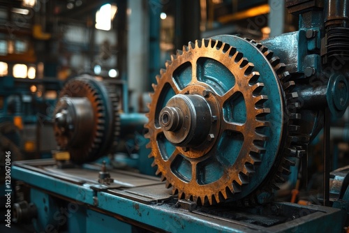 Fototapeta premium Gears rotating in heavy machinery at industrial factory