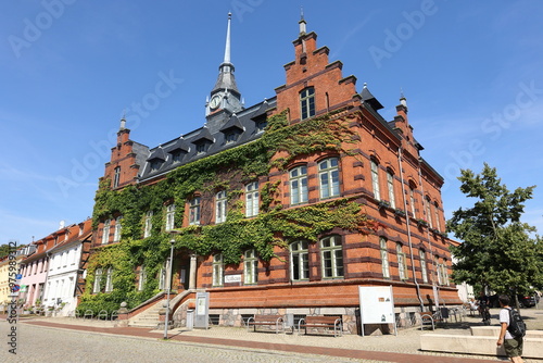 Obraz premium Gebäude des Rathauses in Plau am See ist mit Efeu eingewachsen