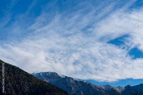 © lexpixelart, Fototapeta premium Gebirge mit bunten Bäumen im Spätherbst