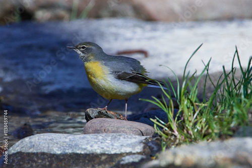 Fototapeta premium Gebirgsstelze im Frühjahr an der Spree in der Oberlausitz