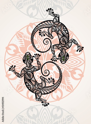© ksysha, Fototapeta premium Gecko lizard in in tattoo style
