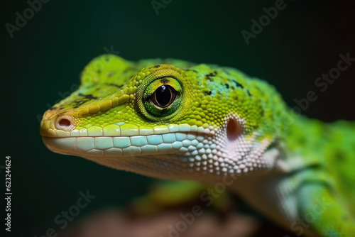 © Kateryna, Fototapeta premium Gecko portrait close up with green background, gecko in wild