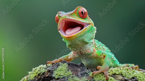 © Rizky, Fototapeta premium Gecko Yawning Jungle Mossy Log
