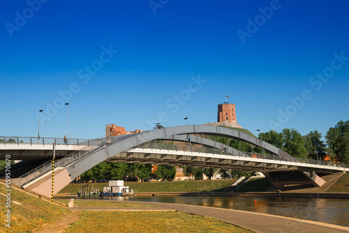 Obraz premium Gediminas Castle and tower in Vilnius, view from river Neris bank