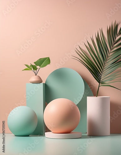 © Stefan, Fototapeta premium Gefühl von Ruhe und emotionalem Gleichgewicht. . Pastellfarben und Pflanzen - Dekoration