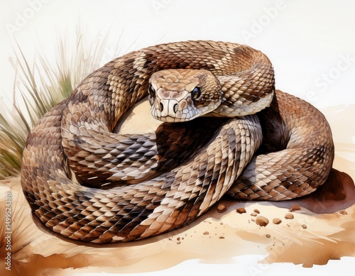 Obraz premium Gefährliche Klapperschlange im Wüstensand