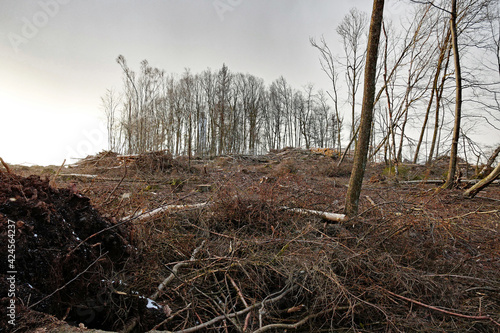 © Stephanie Albert, Obraz premium Gefällte Bäume nach Waldsterben