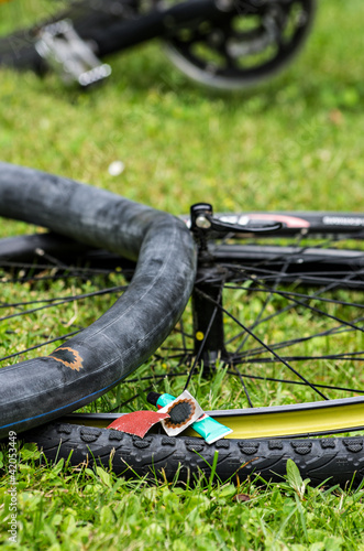 © Zerbor, Fototapeta premium geflickter Fahrradschlauch