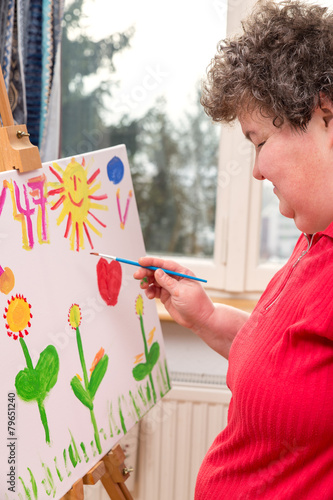 Fototapeta premium Geistig behinderte Frau malt ein Bild