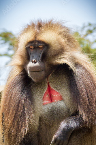 Obraz premium Gelada Baboon also known as Bleeding heart monkey endemic only in Ethiopia