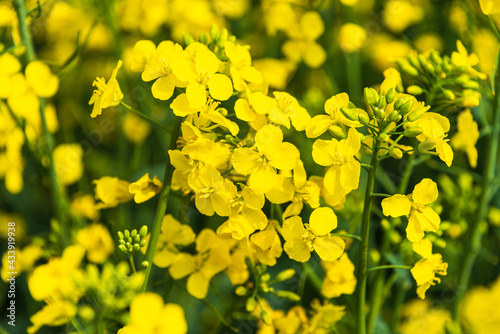 Fototapeta premium Gelb und grün, Rapspflanzen in voller Blüte im Mai