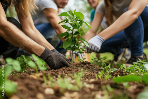 Fototapeta premium Gemeinsames Pflanzen eines Baumes als Zeichen von Gemeinschaft und Nachhaltigkeit