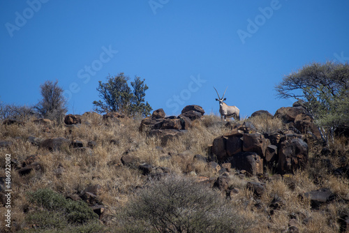 © Richards_du_Toit, Fototapeta premium Gemsbok looks down at the Mokala National Park