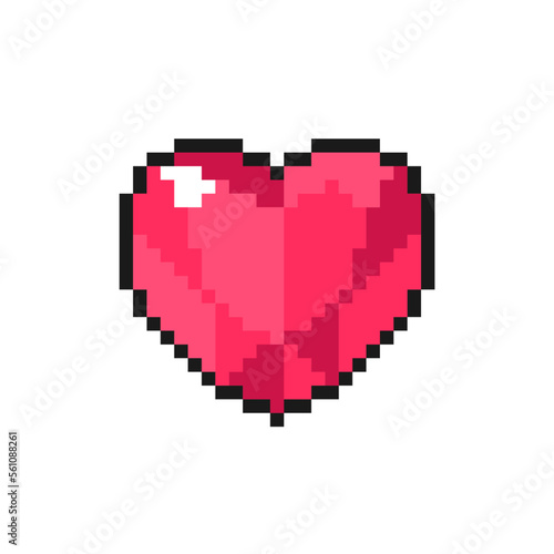 © Derter, Fototapeta premium Gemstone heart shape ruby icon in pixel art style. Love symbol for Valentine's Day. Isolated on white background vector sign