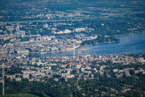 Fototapeta premium Genève, la rade et le jet d'eau depuis le Salève