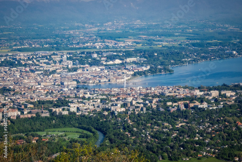Fototapeta premium Genève, la rade et le jet d'eau depuis le Salève