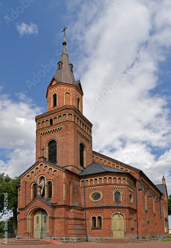 Obraz premium General view and architectural details of a close-up of the Catholic church of St. Michael the Archangel built at the turn of the 19th and 20th centuries in Jabłonka Koscielna in Podlasie, Poland.