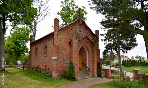 © Jacek Sakowicz, Fototapeta premium General view and close-ups of architectural details of the funeral chapel at the Catholic Church of the Assumption of the Blessed Virgin Mary, in the town of Galiny, warmi, Poland.