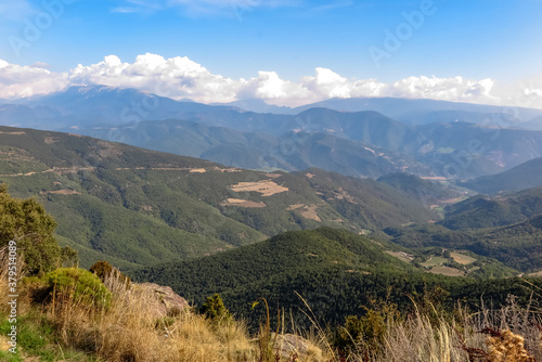 © Raphael, Naklejka premium General view of valley with several mountains and forests, municipality of La Seu d'Urgell, in the region of Alt Urgell, Spain