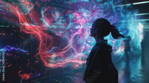 © Johannes, Fototapeta premium Generate a data big screen, with a technological style and a sense of design, containing elements related to big data. Generative AI.