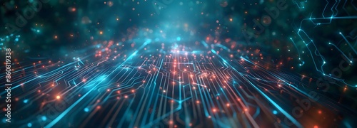© Mr image, Fototapeta premium 19. Generate a digital labyrinth of interconnected nodes and pathways, pulsating with energy and illuminated by glowing circuits against a dark, digital void.