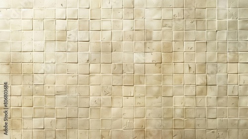 © tanapat, Fototapeta premium Generate a seamless ceramic mosaic wall tile texture. The tiles are square, light beige, and have a slightly glossy finish.