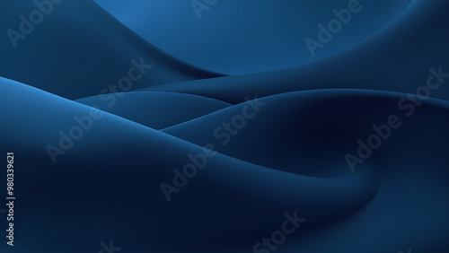 Obraz premium Generate an abstract background image featuring smooth flowing curves similar to soft fabric or liquid waves Use a gradient of deep navy blue and deep dark ocean blue