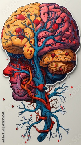 © 2D_Jungle, Naklejka premium Generate an ultra-realistic die cut sticker of a business brain in growth phase