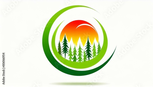 Obraz premium 真夏、草の香り、心地よい暑さ、森林をシンプルにロゴで表現する generated by AI