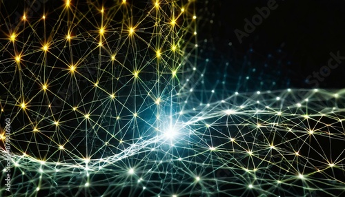 Fototapeta premium 網目状の電撃が黒い空間に広がり光輝く、幻想的でスタイリッシュに表現 Generated by AI