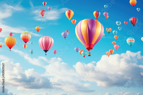 © seanzheng, Obraz premium generated illustration of colorful balloons on blue sky