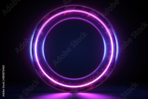 © seanzheng, Obraz premium generated illustration of Neon violet color circle on black background