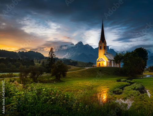© AM studio, Fototapeta premium Generated image ライトアップした教会