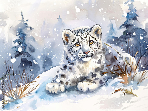 Obraz premium 雪の中で休むユキヒョウの赤ちゃん Generated image