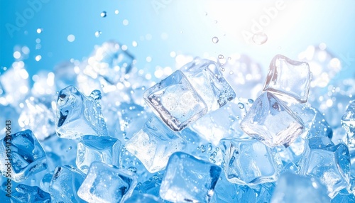 Obraz premium 氷の落下:涼しげなクラッシュアイスと輝く水滴Generated image