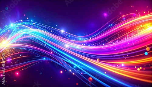 Obraz premium ネオンウェーブ:光の軌跡と未来のエネルギーGenerated image