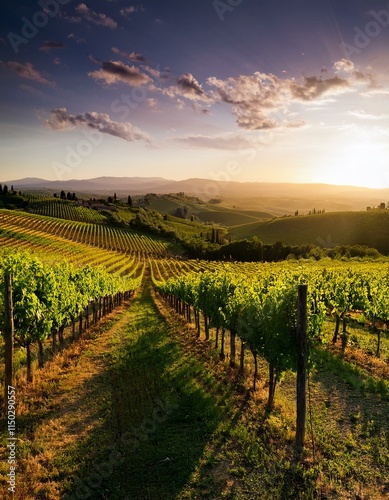 Naklejka premium Generated image Beautiful vineyard landscape at sunset in the Tuscan countryside