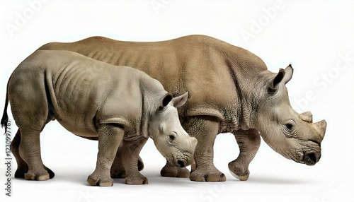 Fototapeta premium Generated image Mother and baby White Rhinoceros, Ceratotherium simum, 10 years old and