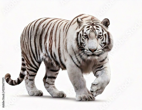 © MdRakibul, Naklejka premium Generated image Strong white tiger walking, isolated on white background