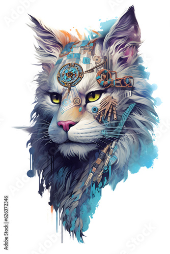 © Marc, Fototapeta premium Generativ Mystical Maine coon cat with spiritual feather fur and colorful drops, Generative AI