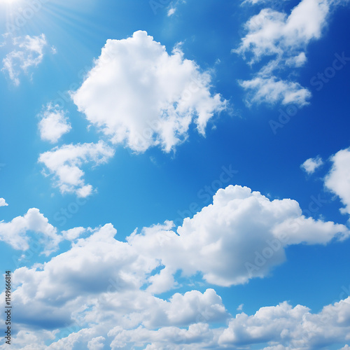 © Third Stone, Obraz premium 青い空と太陽と白い雲 Generative AI
