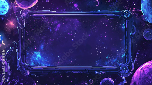 © CheeCatCreate, Obraz premium 深宇宙の神秘的な光が輝く未来的なデザインのフレーム。generative ai