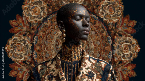 © CheeCatCreate, Obraz premium 民族柄の豪華な衣装を纏った女性のポートレートと装飾的背景 generative ai