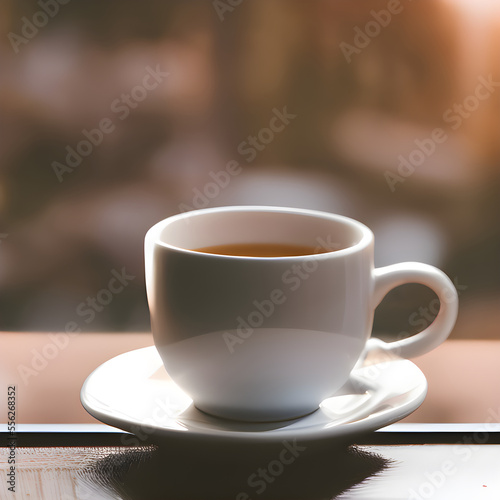 Obraz premium 窓辺のテーブルに置かれたコーヒー, Generative, AI