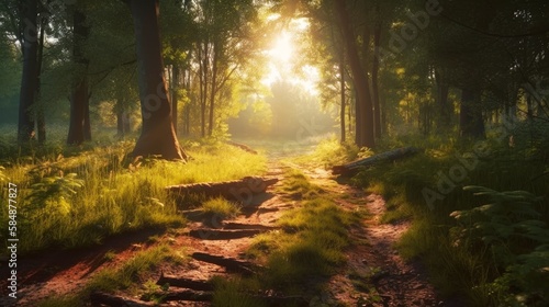 Naklejka premium 朝の森の風景 イメージイラスト generative AI