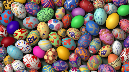 © Third Stone, Obraz premium カラフルなイースターエッグの背景 Generative AI