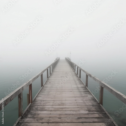 Obraz premium 霧がかった湖の桟橋 Generative AI