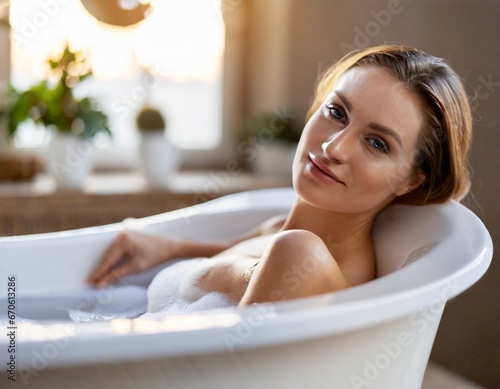 Obraz premium バスタブに浸かる外国人女性 Generative AI