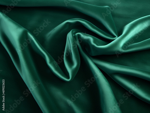 © Third Stone, Obraz premium 緑のサテンの布背景 Generative AI