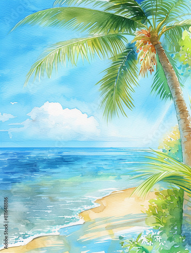 © Third Stone, Fototapeta premium ヤシの木と青い海 Generative AI